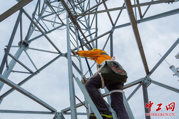 下午两点,在准备工作全部完成后,张贤才开始今天的登塔作业。
