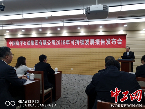 中工网北京3月28日电(记者 王冬梅)中国海洋石油集团有限公司今天在京发布了《中国海洋石油集团有限公司2018年可持续发展报告》,这是中国海油发布的第14份可持续发展报告。报告客观详实披露了2018年中国海油在践行经济、社会、环境三个维度可持续发展中所作的努力和取得的成绩,以及在建设中国特色国际一流能源公司战略目标的过程中取得的进步。