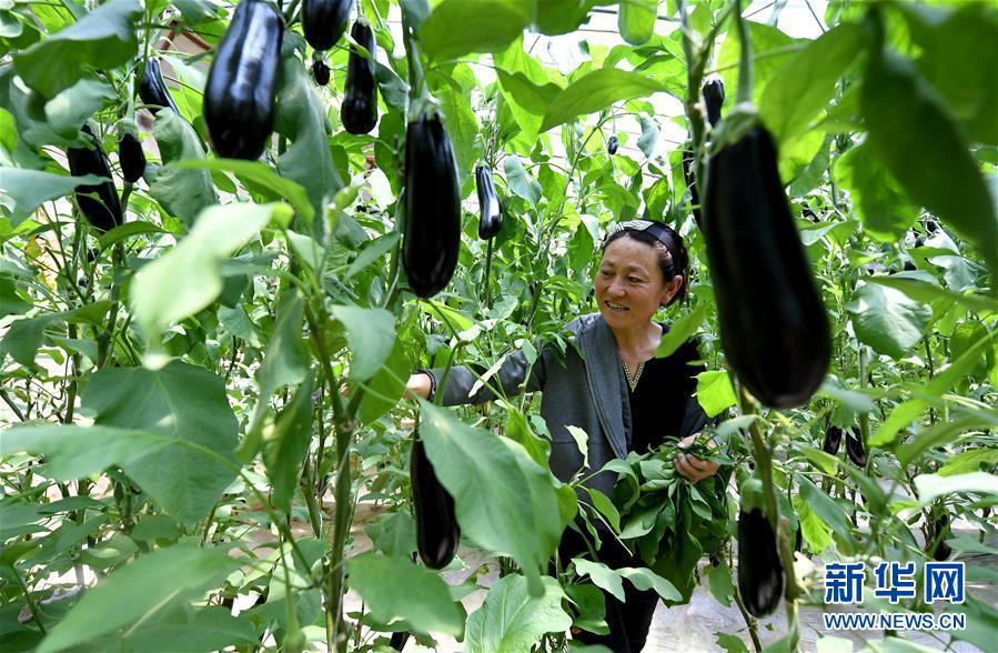陕西省延安市安塞区化子坪镇油坊坪村的村民冯塞春在给茄子修枝(4月23日摄)。 陕西省延安市安塞区位于黄土高原丘陵沟壑区,光热和土地资源丰富。多年来,安塞大力发展设施果蔬产业。截至目前,该区温室大棚面积达6.1万亩,亩均收入16300元,有11000多户农民实现了增收致富。 新华社记者 刘潇摄