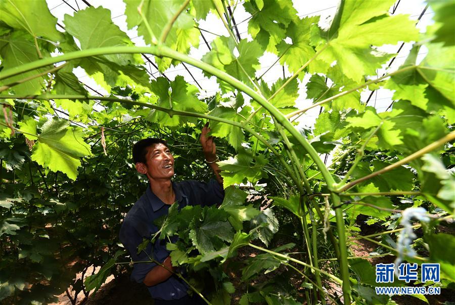 陕西省延安市安塞区化子坪镇油坊坪村的村民在自家的葡萄大棚里(4月23日摄)。 陕西省延安市安塞区位于黄土高原丘陵沟壑区,光热和土地资源丰富。多年来,安塞大力发展设施果蔬产业。截至目前,该区温室大棚面积达6.1万亩,亩均收入16300元,有11000多户农民实现了增收致富。 新华社记者 刘潇摄
