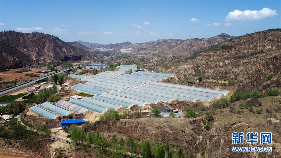 4月23日拍摄的陕西省延安市安塞区化子坪镇油坊坪村的温室大棚(无人机拍摄)。 陕西省延安市安塞区位于黄土高原丘陵沟壑区,光热和土地资源丰富。多年来,安塞大力发展设施果蔬产业。截至目前,该区温室大棚面积达6.1万亩,亩均收入16300元,有11000多户农民实现了增收致富。 新华社记者 刘潇摄