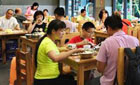 食客在平凉红牛美食烹饪大赛展示厅品尝选手烹调的菜品。