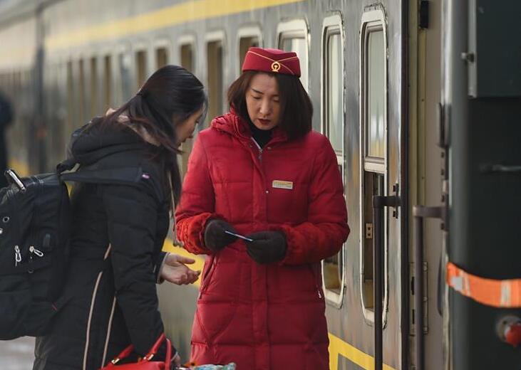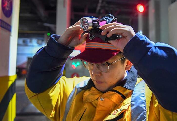 图为下午2点左右,万宜琴结束早班,和丈夫王建东进行交接班,嘱咐丈夫注意安全(1月8日摄)。新华社记者 陈斌 摄