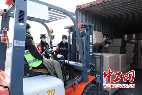 据悉,该批物资由哈萨克斯坦阿拉木图通过中欧班列发往乌鲁木齐,集装箱装载医用口罩、防护服等防疫物资共计1000余件。铁路警方会同相关部门对这批防疫物资进行现场查验,对铁路运单、货物详单、买卖双方合同等进行查看,并加强换装库区作业人员的安全宣传教育,全力保障防疫物资转运期间的安全。(中工网记者吴铎思 通讯员 李疆 高骏)