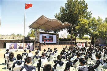 当日,北京市初三年级学生开学复课。北京市第一六六中学初三年级全体师生参加主题为“青春有梦,奋斗有我”的2020年春季学期“开学第一课”。