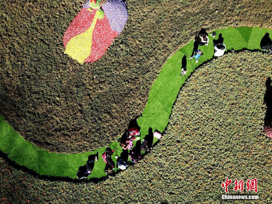 河南洛阳用15万盆鲜花打造巨型“太极”花海(高清组图)