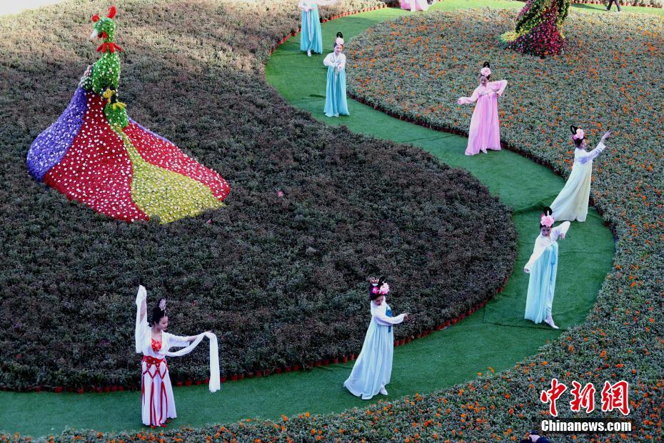 河南洛阳用15万盆鲜花打造巨型“太极”花海(高清组图)