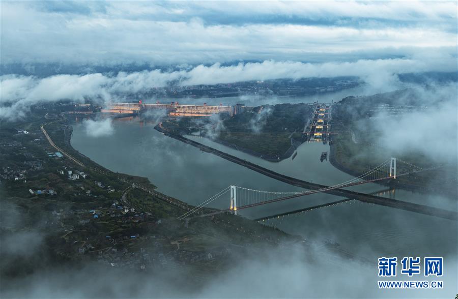 这是4月13日拍摄的三峡工程全景图。湖北宜昌4月13日迎来降雨。雨后长江三峡云雾缭绕,如诗如画。 新华社发(郑家裕 摄)