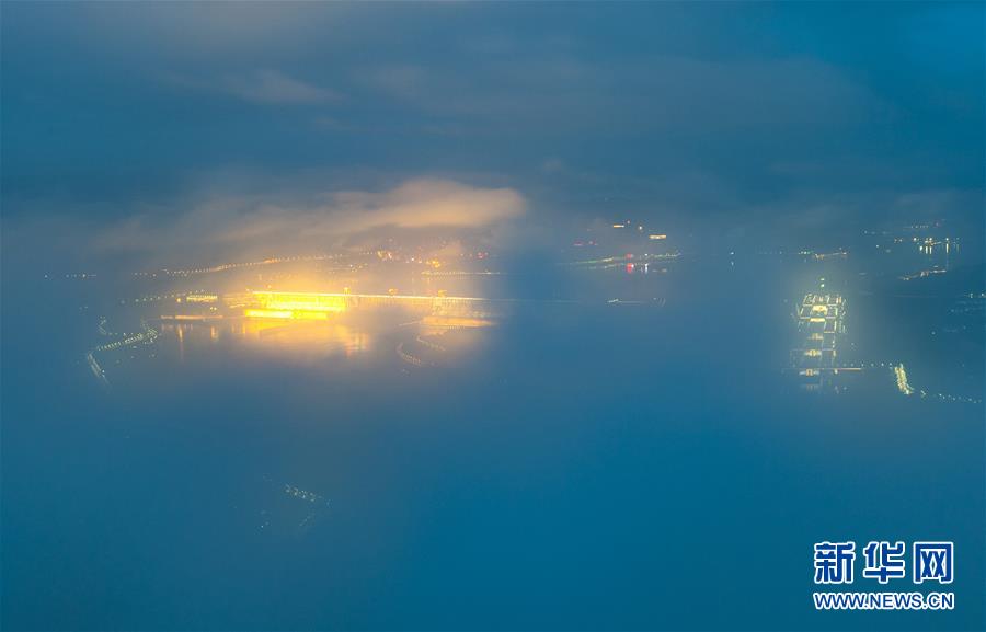 4月13日,长江三峡工程被雾气笼罩。当日,湖北宜昌迎来降雨。雨后长江三峡云雾缭绕,如诗如画。 新华社发(郑家裕 摄)