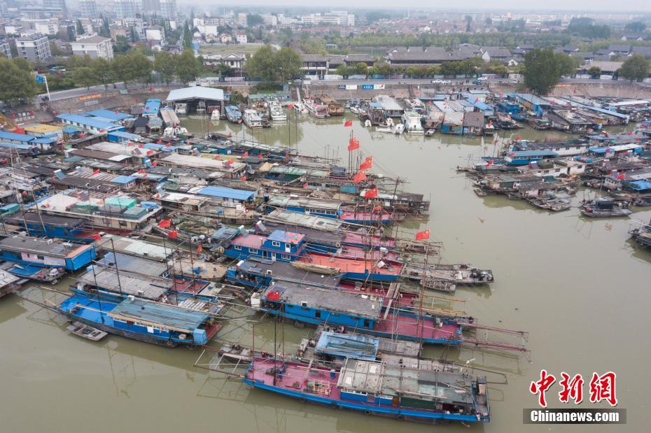 苏北洪泽湖休渔期 渔船停靠蔚为壮观