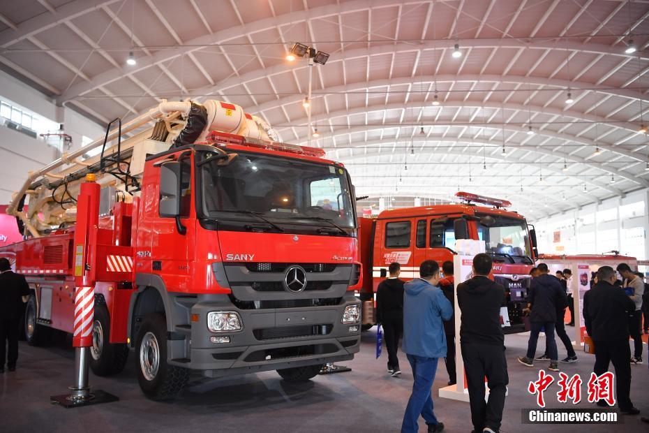 4月16日,昆明消防展展示新型消防车辆。当日,第二届中国(昆明)东南亚·南亚消防安全暨应急救援技术展览会在昆明开幕。现场设立多个专业主题区域,展示包括抢险救援器材、消防车辆、无人机、灭火机器人等最新技术及消防装备。中新社记者 刘冉阳 摄