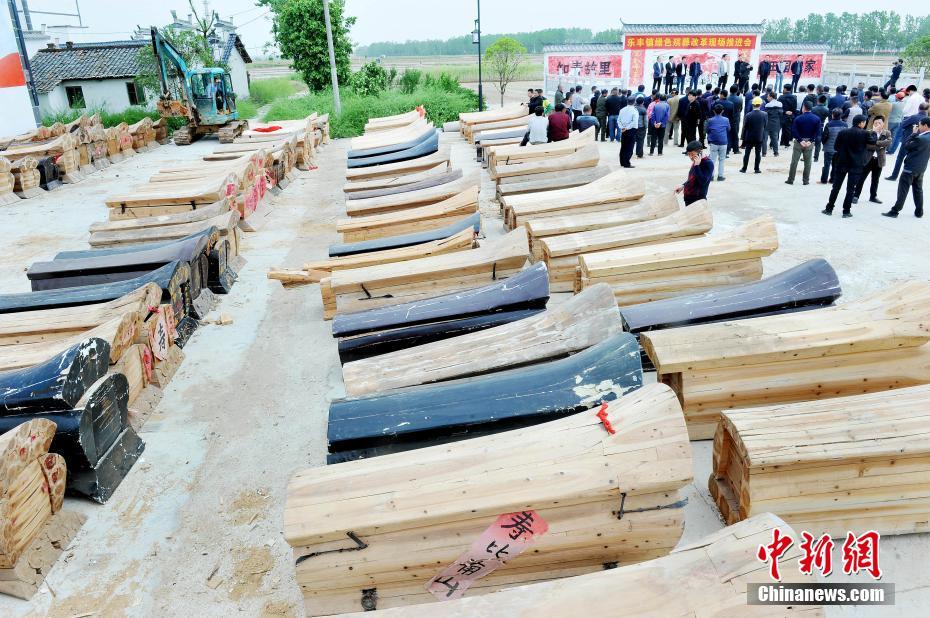 4月15日,江西省鄱阳县村民自愿上交近500口寿棺,在群众的监督下集中销毁,并送往当地一生物质能火力发电厂回炉焚烧发电。据了解,这是江西省鄱阳县在深入推进绿色殡葬改革中,举行的一次现场宣扬火葬公墓活动,旨在鼓励广大群众在对待殡葬改革中做到“厚养薄葬、丧事简办、绿色殡葬”。卓忠伟 摄