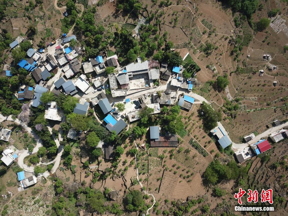 距离4.20芦山地震已过去五周年。4月15至17日,中新社记者走进四川雅安雨城区、芦山县、汉源县等多地,实地探访芦山地震灾后壹基金五年来的援建项目。图为俯瞰海拔1500米的小山村——万坪小学。中新社记者 陈文 摄