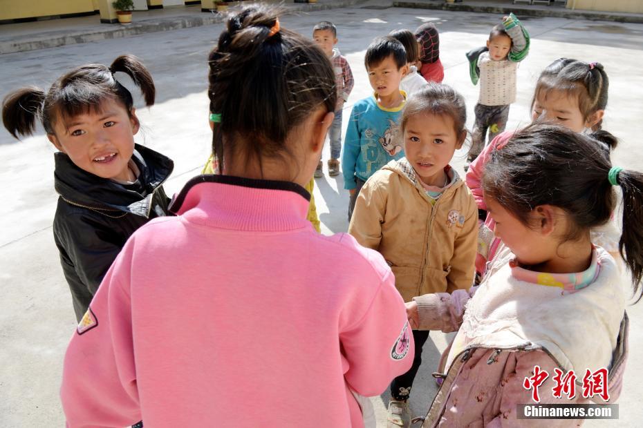 距离4.20芦山地震已过去五周年。4月15至17日,中新社记者走进四川雅安雨城区、芦山县、汉源县等多地,实地探访芦山地震灾后壹基金五年来的援建项目。图为汉源县片马彝族乡万坪小学生课间休息玩耍。中新社记者 陈文 摄