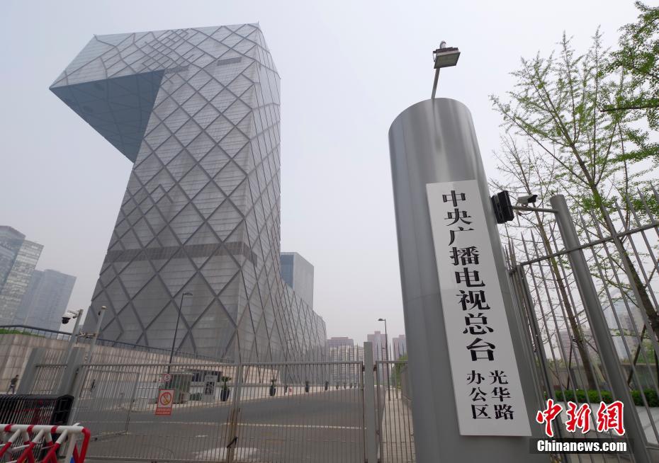 4月19日,新组建的中央广播电视总台正式揭牌。根据《深化党和国家机构改革方案》,整合中央电视台(中国国际电视台)、中央人民广播电台、中国国际广播电台,组建中央广播电视总台,作为国务院直属事业单位,归口中宣部领导。对内保留原呼号,对外统一呼号为“中国之声”。图为中央广播电视总台光华路办公区外景。中新社记者 贾天勇 摄