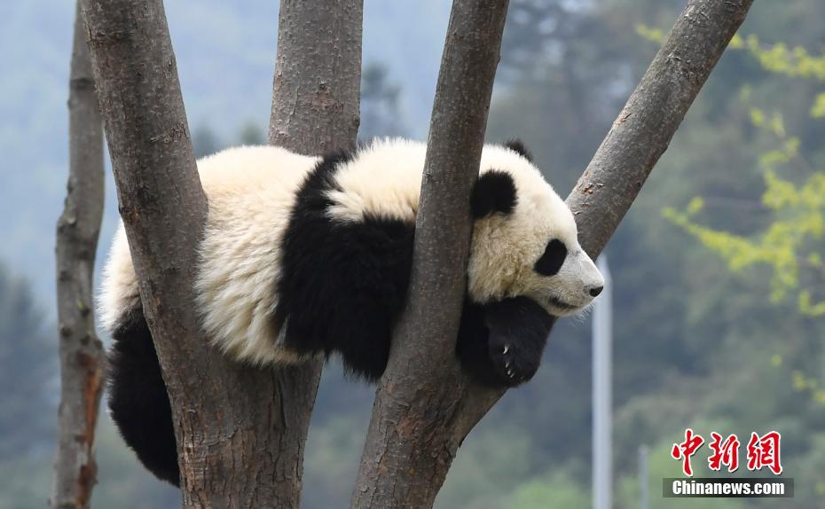 慵懒的熊猫宝宝。安源 摄