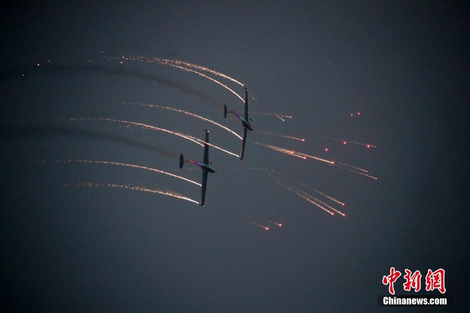郑州航展闭幕 “晚霞飞行秀”点亮夜空