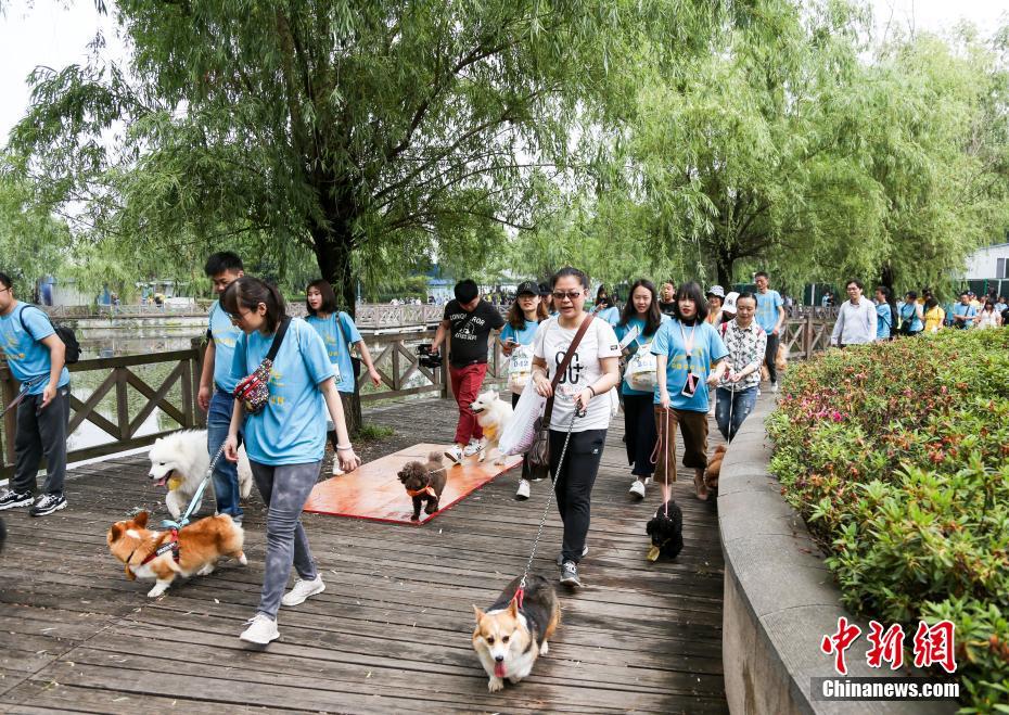 众多民众带着宠物狗前来参赛。 中新社记者 张畅 摄