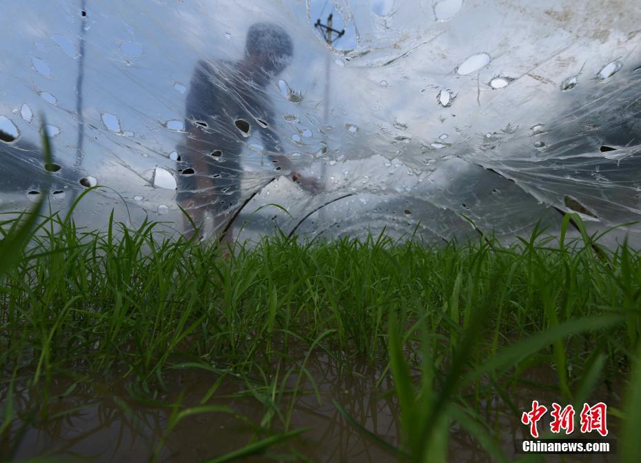 5月6日,贵州松桃县盘石镇,民众在田间进行灾后秧苗护理。当日13时,贵州省铜仁市松桃苗族自治县盘石镇十余个村遭遇冰雹袭击,农户房屋、作物受灾,无人员伤亡。松桃县及时组织镇村干部进入受灾民众家中,帮助民众有序开展灾后重建工作。中新社发 龙元彬 摄