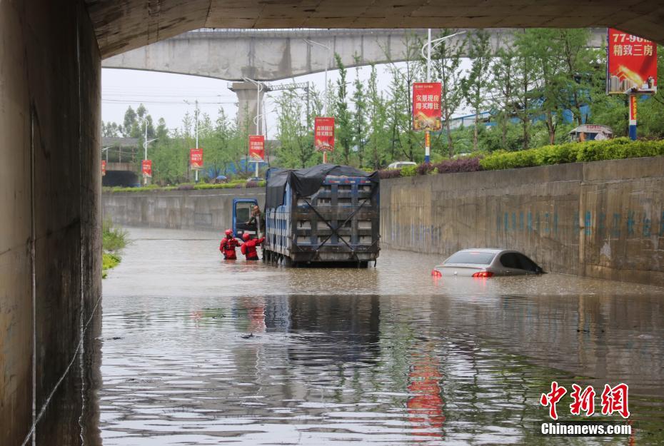 5月7日早上,暴雨致桂林内涝车辆被淹,消防官兵紧急营救出多名被困人员,包括两名自驾游北京女子。 中新社记者 李宗臻 摄