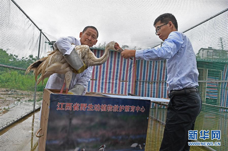 5月7日,江西省野生动植物救护繁育中心的工作人员将小白鹤装入特制木箱,正式踏上千里“寻亲之旅”。