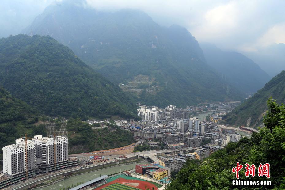 5月8日,鸟瞰四川省宝兴县“熊猫古城”。经历了汶川特大地震、芦山强烈地震以后的四川宝兴县,通过灾后重建着力推进熊猫古城相关配套设施和重要节点建设,将其打造为川西大熊猫生态旅游环线上最具代表性、标志性的精品旅游景区。 中新社记者 王磊 摄