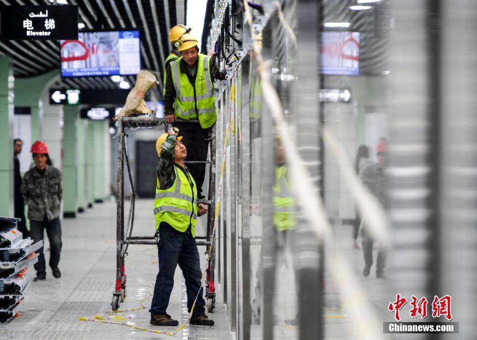 5月9日,新疆乌鲁木齐地铁1号线植物园站内,工作人员调试设备。据介绍,历时4年的施工建设,乌鲁木齐市地铁1号线将于6月实现北段通车试运营,12月全线通车试运营。 中新社记者 刘新 摄
