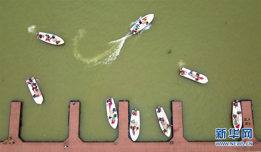 5月10日,救援人员驾驶冲锋舟在广西柳州市柳江水域进行救援演练。当日,2018年广西柳州自然灾害应急救助联合演练在柳州市区柳江水域展开。演练模拟当地突发洪涝灾害,参演的应急救援保障队伍围绕相关救援项目进行演练,以提升多部门联合应急抢险能力。新华社发 黎寒池 摄