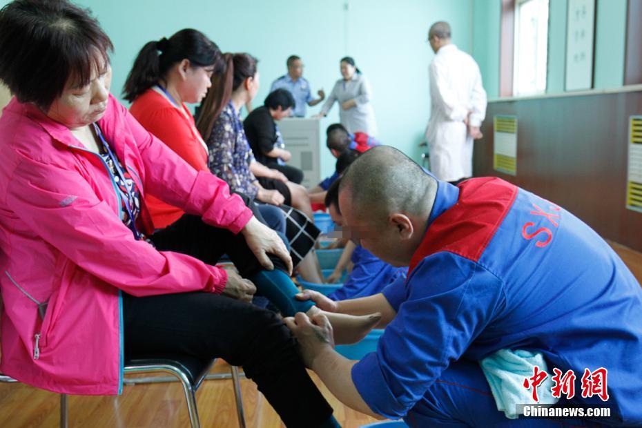 5月10日,山西省强制隔离戒毒所大院内响起了温暖人的合唱歌声。在母亲节即将来临之际,该所收治大队邀请戒毒人员的母亲及其亲属来所帮教,开展了亲情帮教、团体心理辅导活动。在“我给妈妈洗脚”环节活动中,随着轻柔的音乐响起,戒毒人员双膝跪地,人生第一次为生养他们的母亲洗脚,在场的妈妈们无不动容、喜极而泣。“刚才在给妈妈洗脚的时候,真的想不到原来自己的妈妈这么瘦小,脚上一点肉都没有,一手按下去全是骨头,我再也不能让她为我操心、为我流泪了。”一名戒毒人员讲。 韦亮 摄