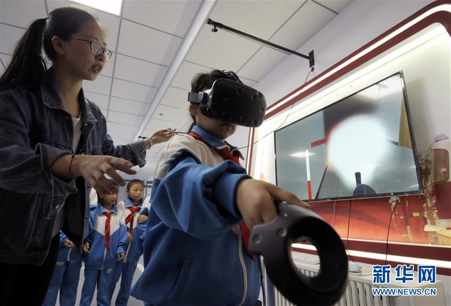 5月11日,工作人员指导邢台经济开发区赵麻村小学的学生进行模拟逃生演练。新华社发(田晓丽 摄)