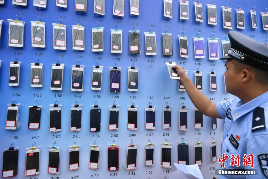 5月12日,昆明警方向受害人集中发还被盗抢手机。当日,昆明市公安局举行“打击‘盗抢改销’专项行动涉案物品发还仪式”,将400余部被“盗抢改销”的手机集中发还给受害者。 中新社记者 任东 摄