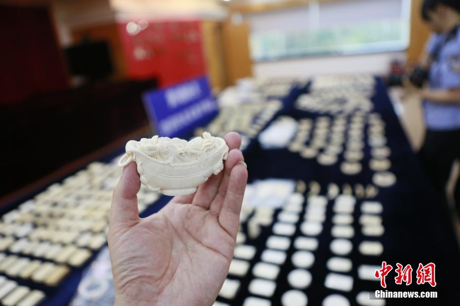 5月14日,记者从黄埔海关获悉,该关缉私局日前查获1起涉嫌走私进口象牙制品案,经清点,此次行动查扣涉案象牙制品共计740件,共计28.83公斤,其中非洲象牙制品15.72公斤、猛犸象牙制品13.11公斤,抓获犯罪嫌疑人2名。该案为今年世界国际刑警组织发起、公安部牵头参与的打击濒危野生动物非法贸易“雷雨行动”以来,黄埔海关查获的首宗象牙制品走私进口案。图为黄埔海关查获的走私象牙制品。中新社记者 张海龙 摄