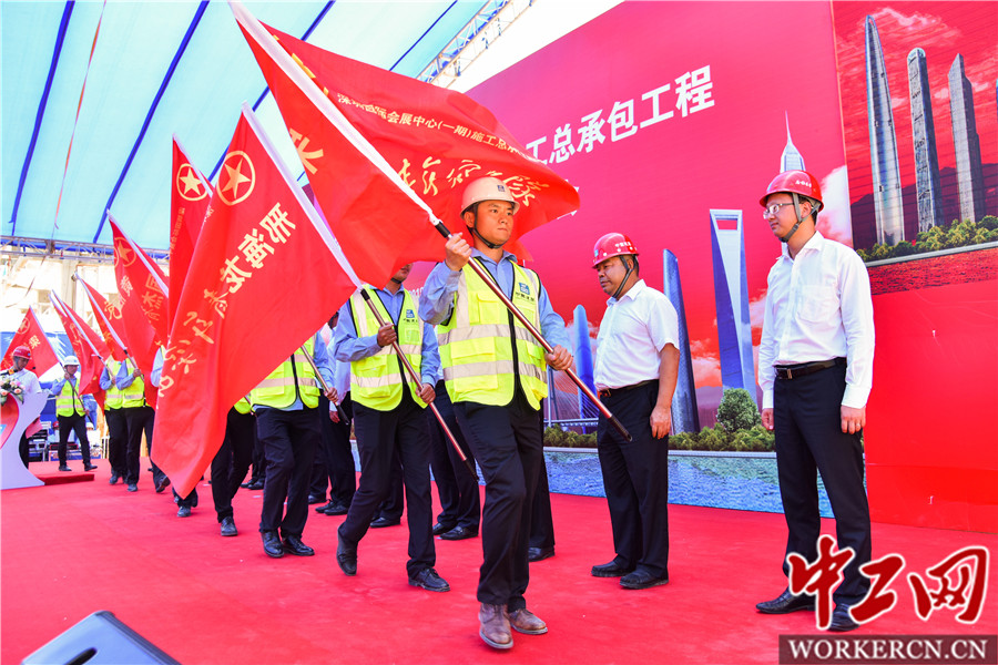 深圳国际会展中心(一期)项目不仅工期紧张,工序高度穿插,还面临着高温、暴雨、台风等的恶劣天气影响。为确保8月底完成钢结构主体工程、9月底完成金属屋面断水的节点目标,中建股份深圳国际会展中心项目中建钢构项目部在动员大会上与各个施工单位签订责任状,进一步统一思想,明确目标,落实责任到人,并将在接下来的施工中,分工区开展劳动竞赛,在会展这片粤港澳大湾区的前沿热土上,迅速掀起钢结构施工大干快上的火热场面。