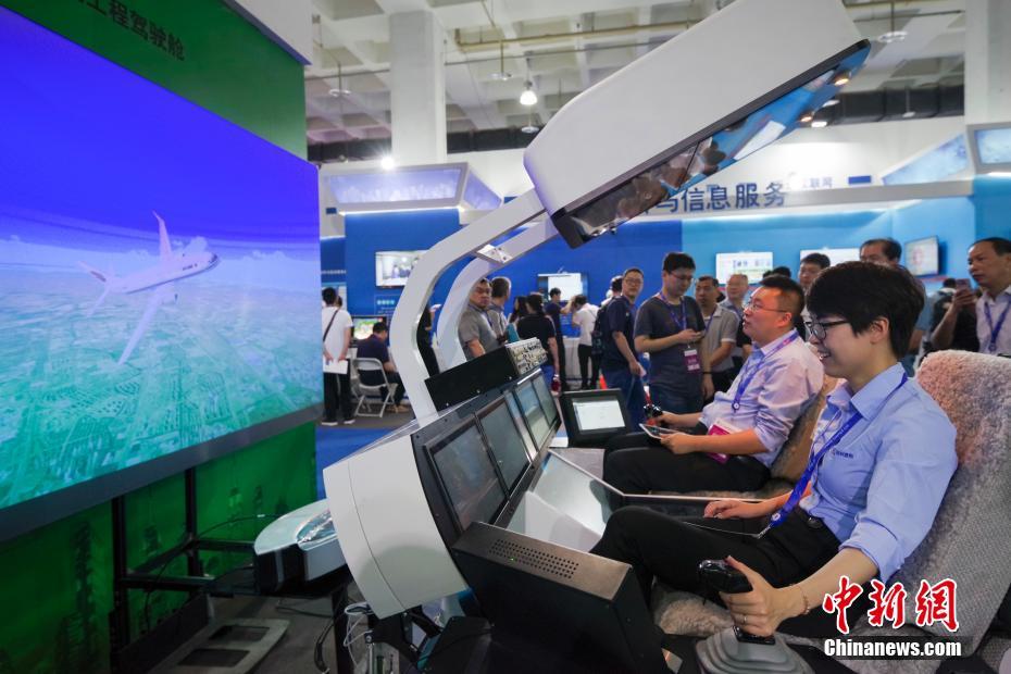 5月17日,第二十一届中国北京国际科技产业博览会在中国国际展览中心开幕。本届科博会有1600多家科技企业参展。联合国工业发展组织、加拿大、法国、德国、美国等14个国家和地区的17个代表团出席科博会各类活动。图为观众体验模拟飞机驾驶。中新社记者 贾天勇 摄