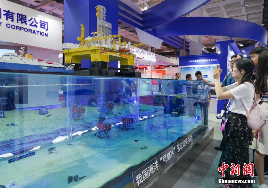 5月17日,第二十一届中国北京国际科技产业博览会在中国国际展览中心开幕。本届科博会有1600多家科技企业参展。联合国工业发展组织、加拿大、法国、德国、美国等14个国家和地区的17个代表团出席科博会各类活动。图为中国海洋“可燃冰”试采设备模型。中新社记者 贾天勇 摄