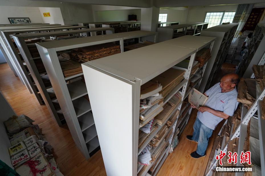 5月17日,贵阳市南明区小山村,刘玉智在藏报馆内整理报纸。位于贵阳市南明区永乐乡的刘玉智藏报馆,由300平方米的展馆、200平方米的收藏馆和 100平方米的仓库组成。刘玉智1963年开始藏报,55年来收集华文报纸5万多种、50多万份,从清末至今,时间跨度百余年,涵盖了政治、军事、经济、文化、商业、工业、体育等各种专题,《国民日报》、《救国报》、《新华日报》、《解放日报》等具有很高收藏价值的报纸,伞报、金报、生肖报、寿报、“中国第一小报”等制作新颖的报纸也陈列其中。中新社记者 贺俊怡 摄