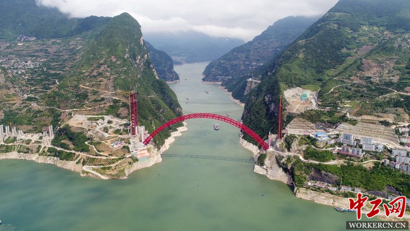 中工网讯(记者 张翀 通讯员 张静 陈杰 邹炜)5月22日10时28分,随着主拱合龙段两颗工具螺栓紧固到位,香溪长江大桥主拱完美合龙,犹如一道红色的长虹横跨在长江上,标志着由中铁大桥局承建的世界最大跨度钢箱桁架推力式拱桥施工迈过了风险最高、难度最大的阶段。