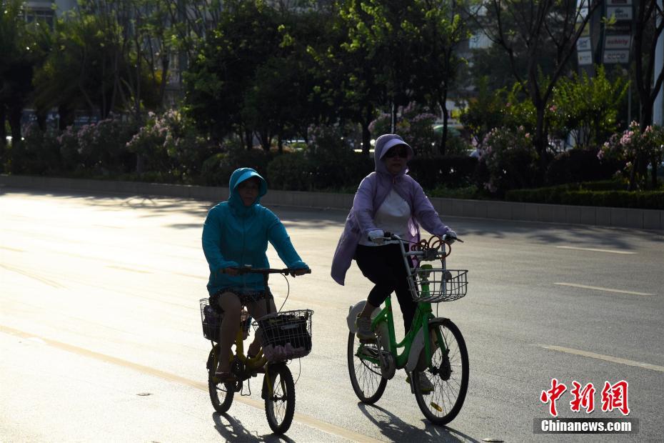 5月25日,广西柳州市高温来袭,不少顶着烈日出行的市民给自己穿上了“捂装”。近两日来,广西多地发布今年首个高温黄色预警,气温纷纷飙升至35摄氏度。根据广西气象部门介绍,今年的高温来的相对较早,但是受即将到来的受冷空气影响,气温在未来一个星期内将会小幅度下降。 王以照 摄
