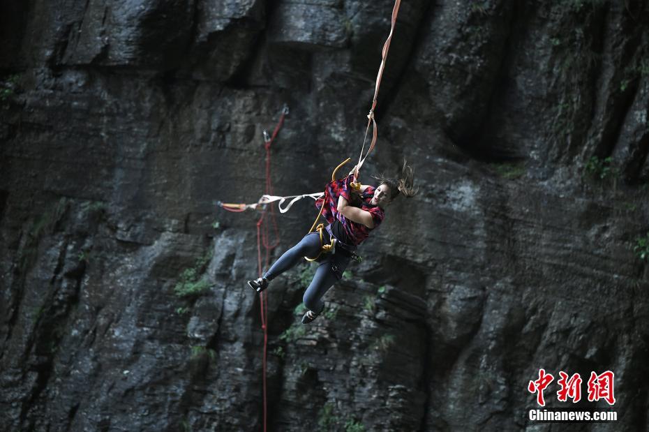 美国选手费丝·迪基挑战失败掉下扁带。邵颖 摄