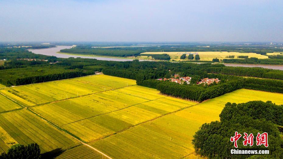 齐鲁大地乡村秀丽 黄河两岸麦浪滚滚