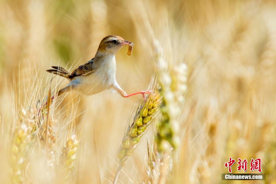 走近细看,小巧玲珑的棕扇尾莺,在麦穗上表演“轻功”,精神抖擞地捉虫。宋广兴 摄