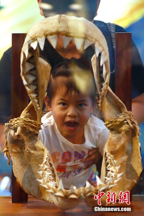 6月1日,北京海洋馆举办2018年“情系蔚蓝 输送希望”图书阅读季暨“联盟书屋”启幕仪式。从今年儿童节开始,北京、武汉、西安、兰州、贵阳、昆明等10个城市的12家水族馆里,均将开设结合科普教育、亲子互动、活动定制等多种形式的创新平台——“联盟书屋”,让孩子们及时通过科普读物了解更多新奇知识。图为小朋友在北京海洋馆内的书屋观看海洋标本。中新社记者 富田 摄