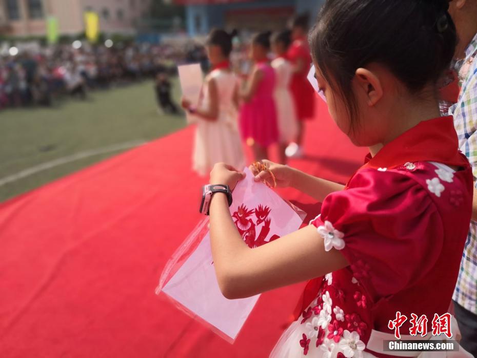 6月1日,兰州七里河区举行第十三个“文化和自然遗产日”“非遗进校园”活动开展一周年汇报活动。活动现场,七里河区各中小学的非遗作品进行了集中展示,七里河区健康路小学的学生在非遗传承人的带领下,现场进行剪纸。健康路小学校长黄荣介绍说,此次活动旨在进一步加强未成年人思想道德建设,加大非物质文化遗产保护力度,传承民族文化。杨娜 摄