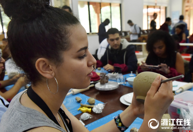 2018年6月3日,来自摩洛哥的留学生伊可(Oughalmi ikram),在自己亲手做的作品上刻国籍、姓名,以留作纪念。