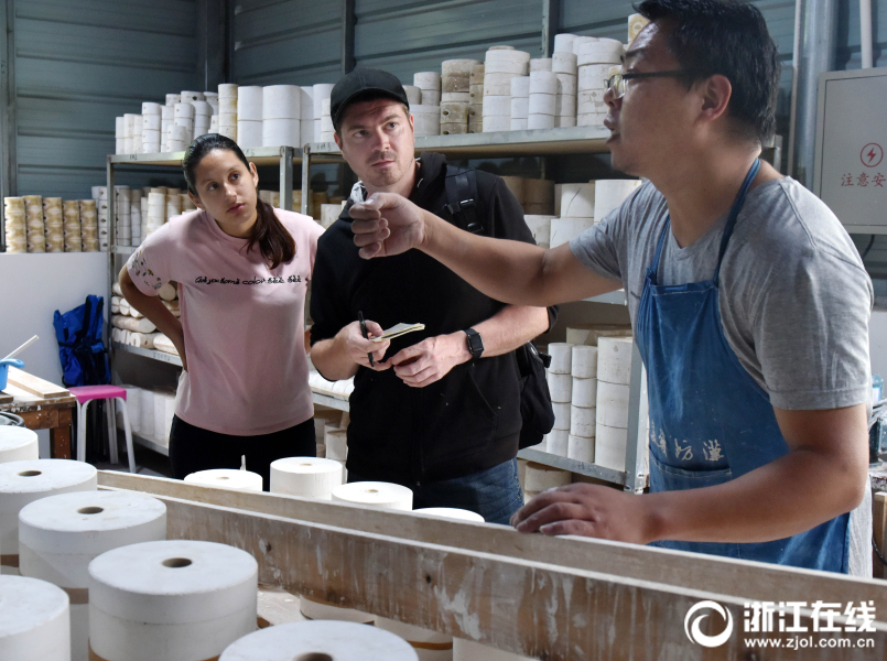 2018年6月3日,来自30多个国家的70多名留学生,在武义汉坊婺窑认真学习修坯、上釉等环节。