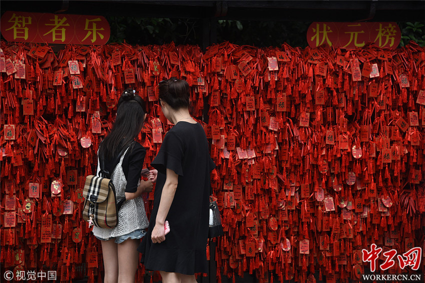 2018年6月3日,南京,夫子庙内悬挂的高考祈福牌。