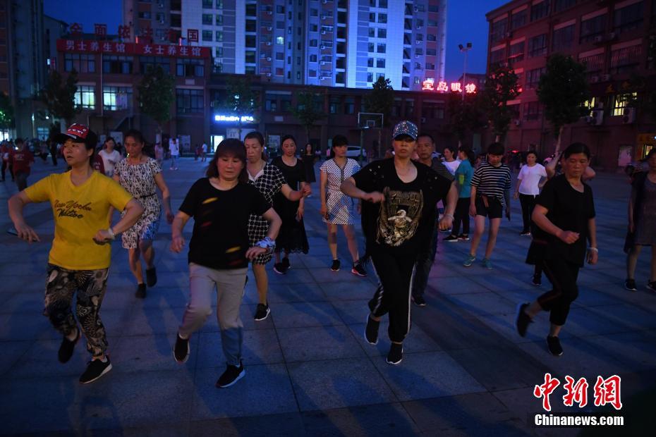 6月4日晚,陪读家长聚集在广场上跳着最流行的广场舞,这里也是他们打发时间的好去处。 韩苏原 摄