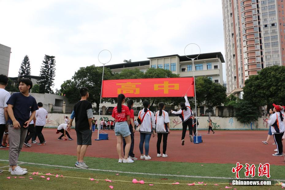 学生们在玩高中游戏,寓意“高中”。王以照 摄