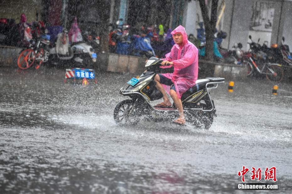 第4号台风携强降雨袭扰海南 海口民众冒雨涉水出行