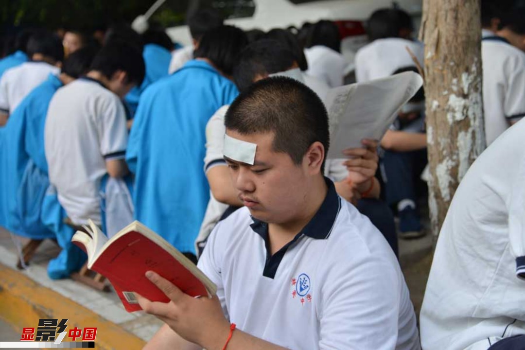 部分考生额头贴着清凉帖用来避暑。新华网 王立鹏摄